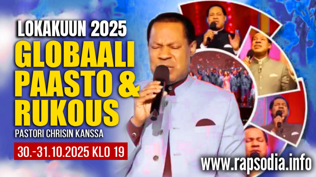 Tervetuloa mukaan paastoamaan ja rukoilemaan maailman kansakuntien puolesta 30.-31.10.2025 (TO – PE). Paaston aika on päivittäin klo 06:00-18:00 ja joka ilta klo 19:00 Pastori Chris järjestää live-lähetyksen, jossa rukoilemme yhdessä ja aikaan saamme muutoksia maailman tilanteisiin. Tulkkaamme iltaisin klo 19:00 alkavat rukouskokoukset suomeksi ja pääset osallistumaan niihin osoitteesta: www.rapsodia.info